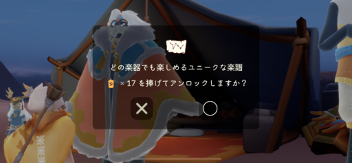 渡りの鐘職人季節クエストを進めると渡りの舟と一緒に移動する。孤島の砂漠の端にあるテントのサークルに座ることで滞在場所に移動できる。